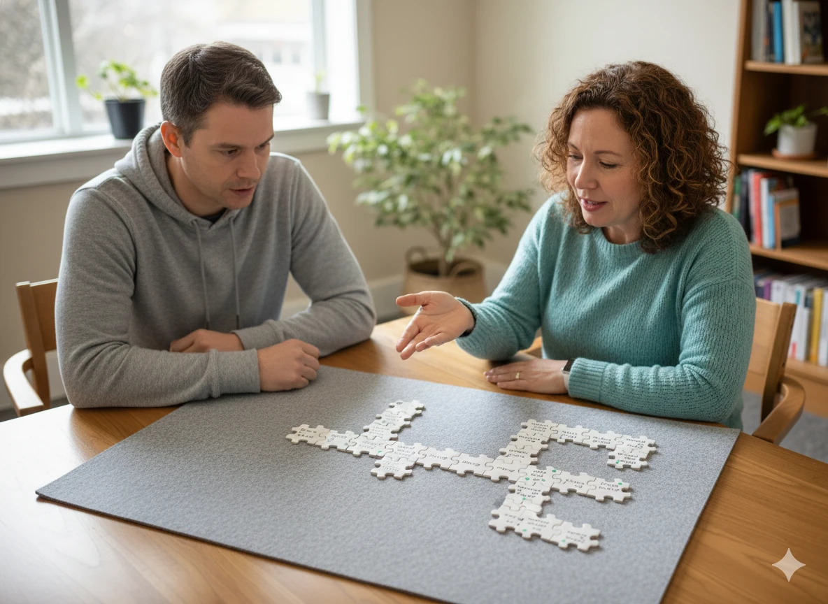 During early sessions, clients often provide disorganized or incomplete life histories. The puzzle helps surface key events, transitions, and relational moments in a way that feels manageable.